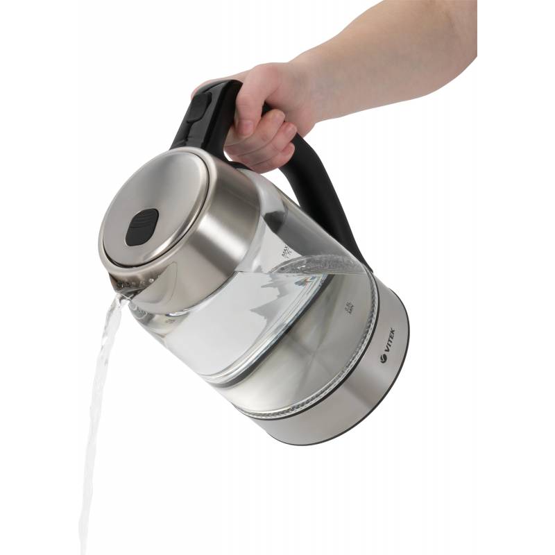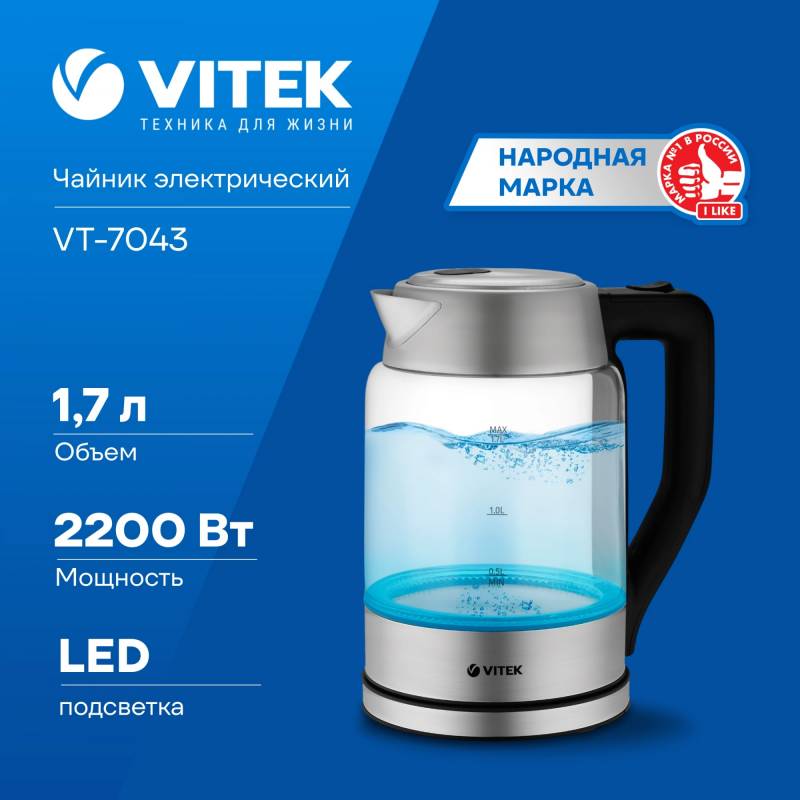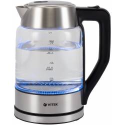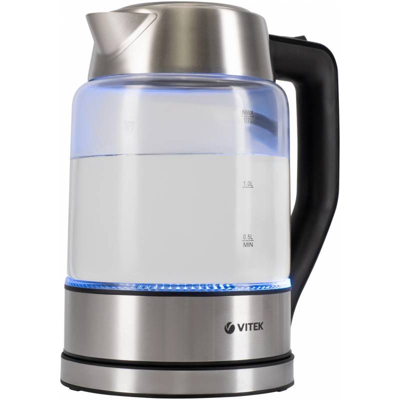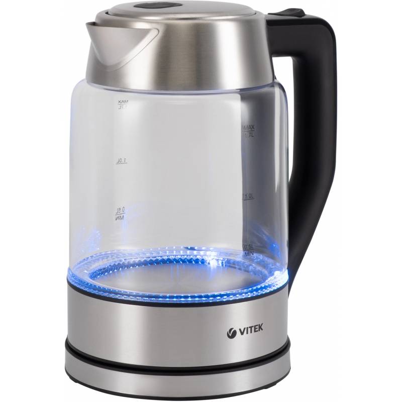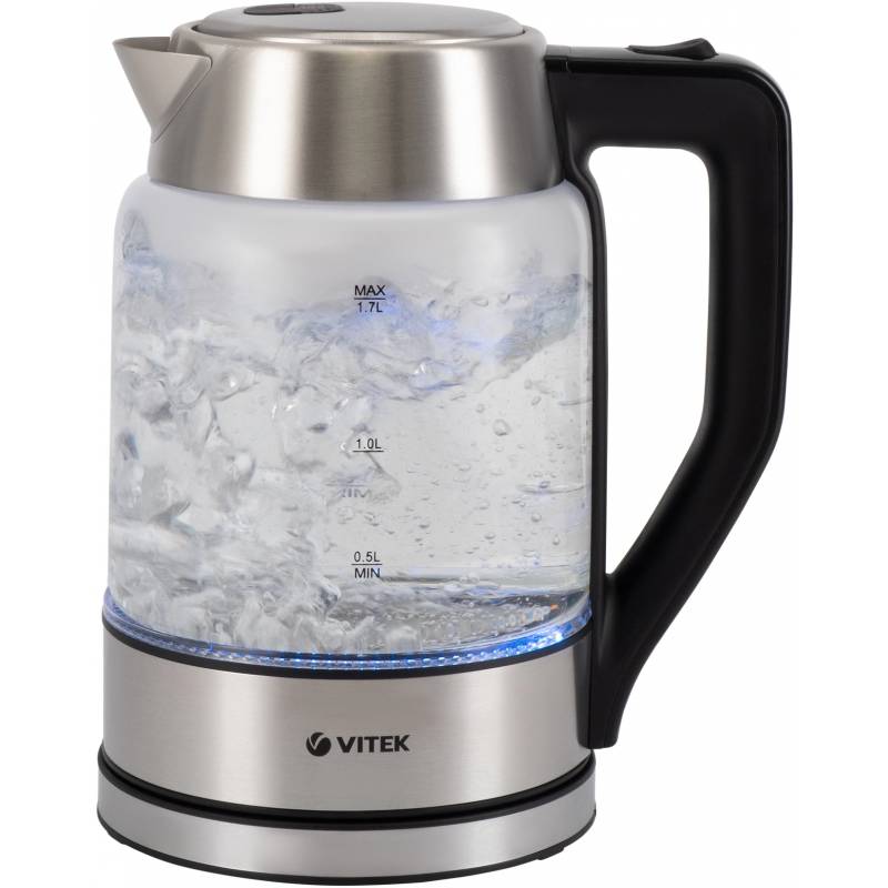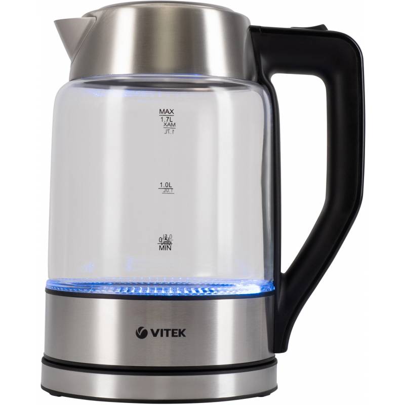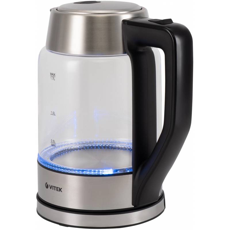 Чайник электрический Vitek VT-7043 1.7л. 2200Вт прозрачный/черный корпус: стекло