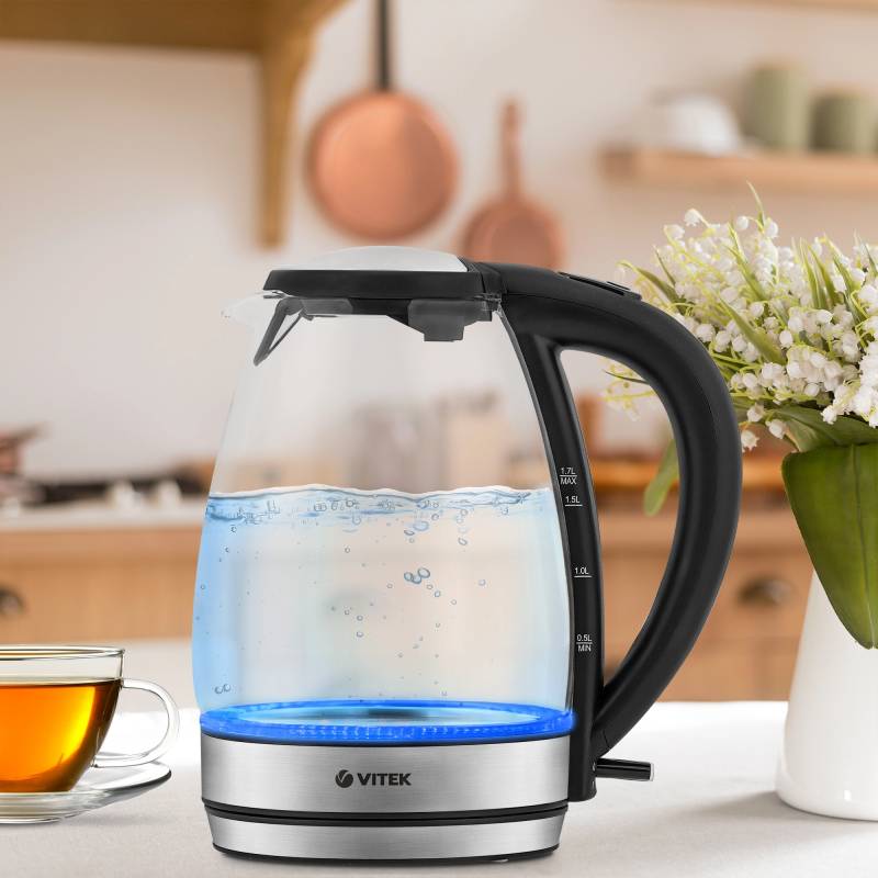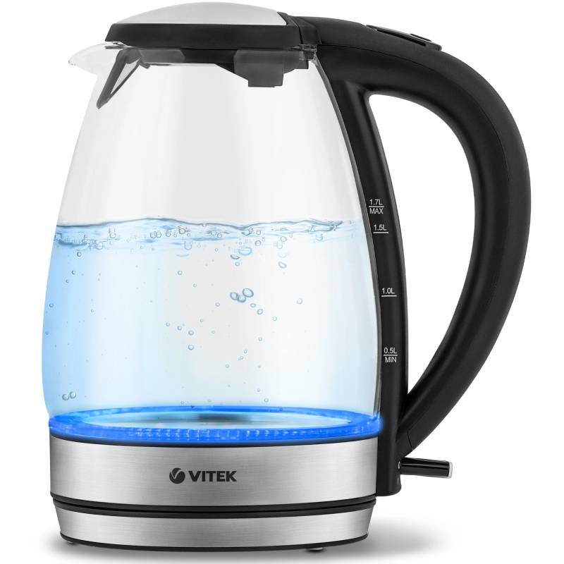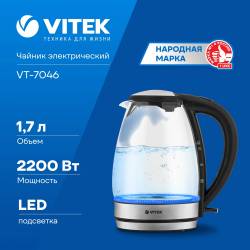 Чайник электрический Vitek VT-7046 1.7л. 2200Вт прозрачный/черный корпус: пластик/стекло