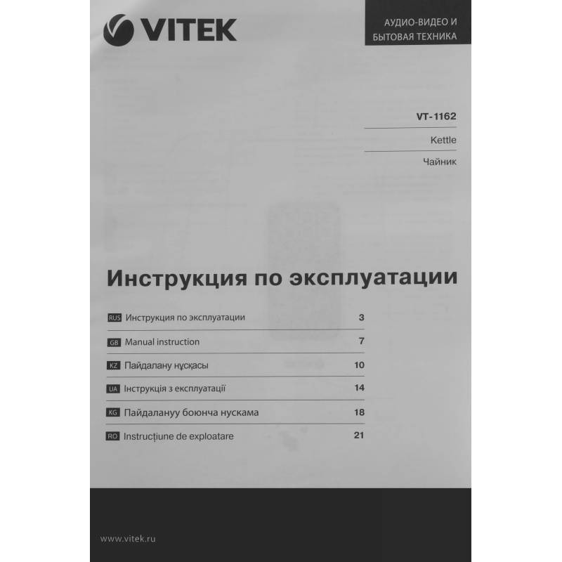 Чайник электрический Vitek VT-1162 1.7л. 2200Вт черный корпус: металл/пластик