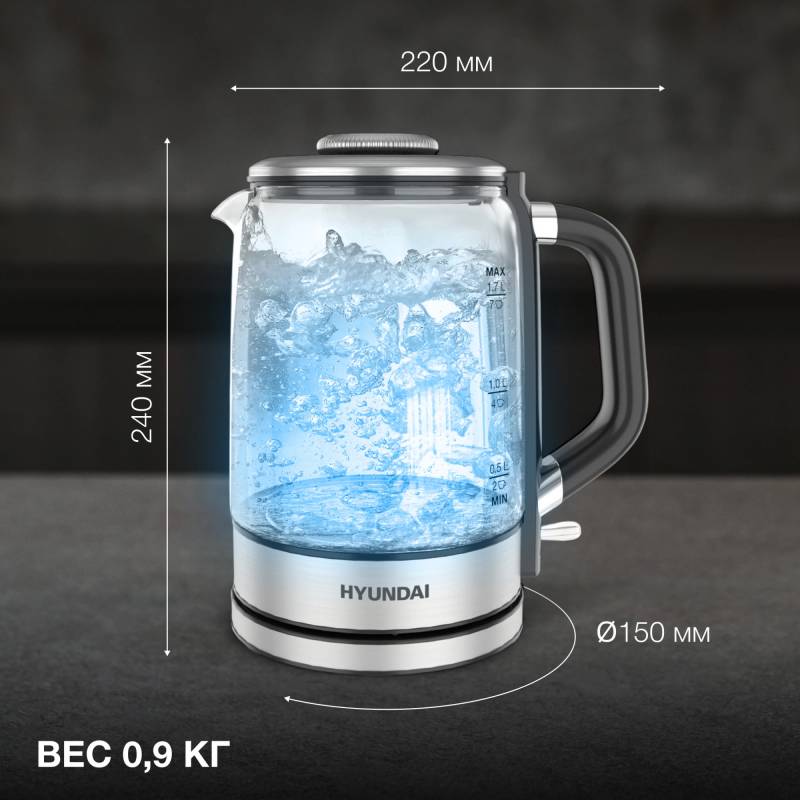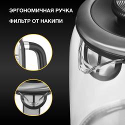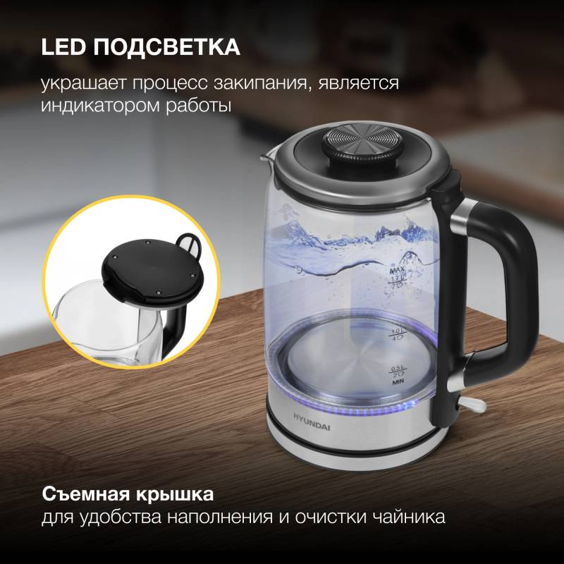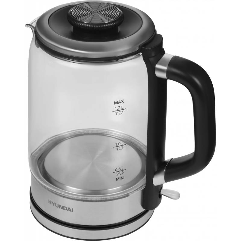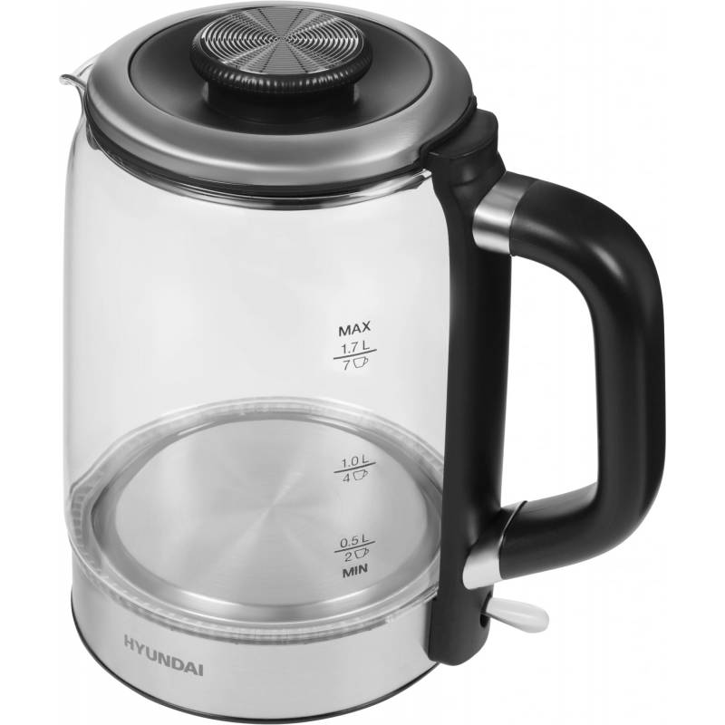 Чайник электрический Hyundai HYK-G5501 1.7л. 2200Вт серебристый/черный корпус: стекло