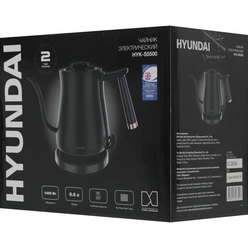 Чайник электрический Hyundai HYK-S5500 0.7л. 1000Вт черный/черный корпус: металл