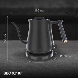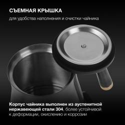 - Корпус выполнен из аустенитной стали, более устойчива к окислению, деформации и коррозии.Узкий длинный носик для удобства заваривания напитков.
