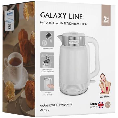 Чайник электрический Galaxy Line GL 0364 1.7л. 2200Вт белый корпус: нерж.сталь/пластик (7010103641)