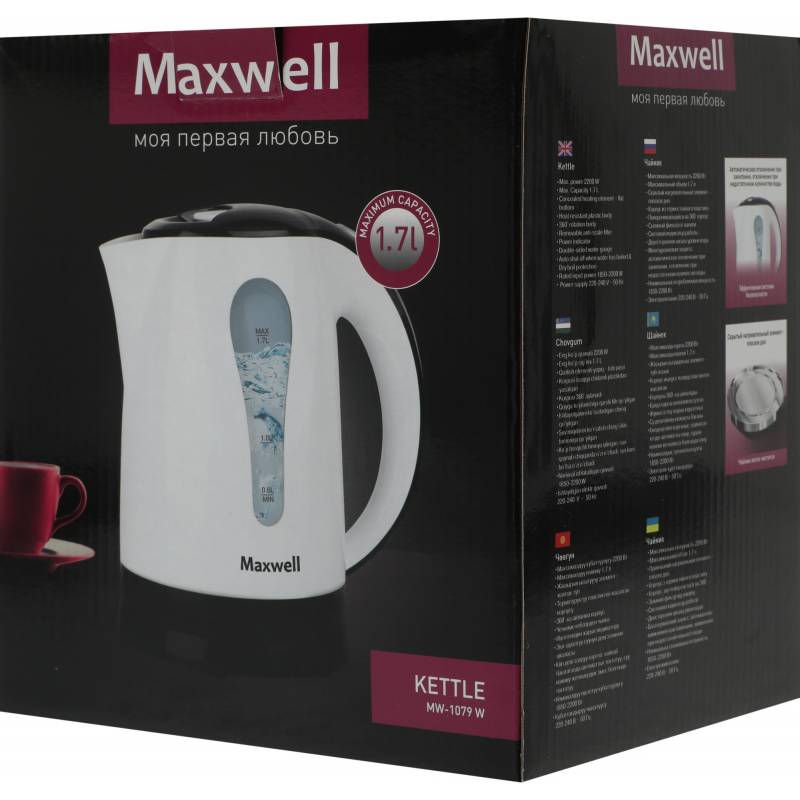 Чайник электрический Maxwell MW-1079 1.7л. 2200Вт белый/черный корпус: пластик