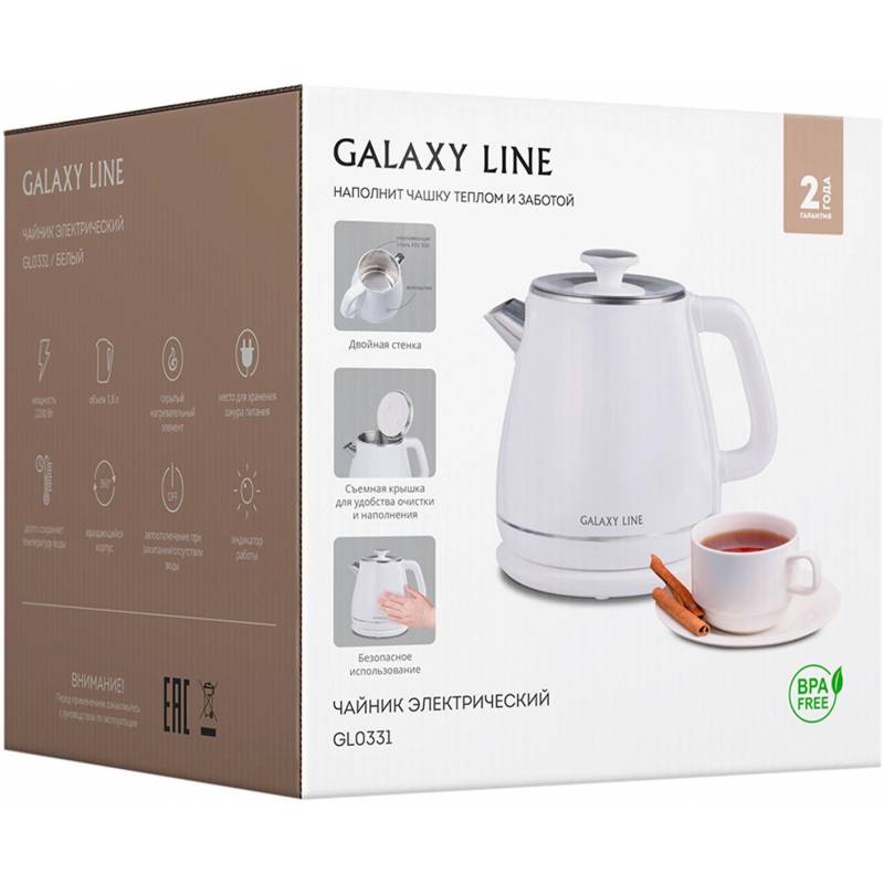 Чайник электрический Galaxy Line GL 0331 1.8л. 2200Вт белый корпус: пластик (ГЛ0331ЛБЕЛ)