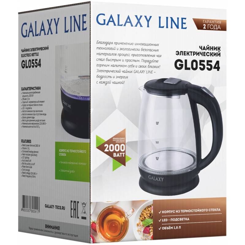Чайник электрический Galaxy Line GL 0554 1.8л. 2000Вт черный/прозрачный корпус: стекло/пластик (ГЛ0554Л)