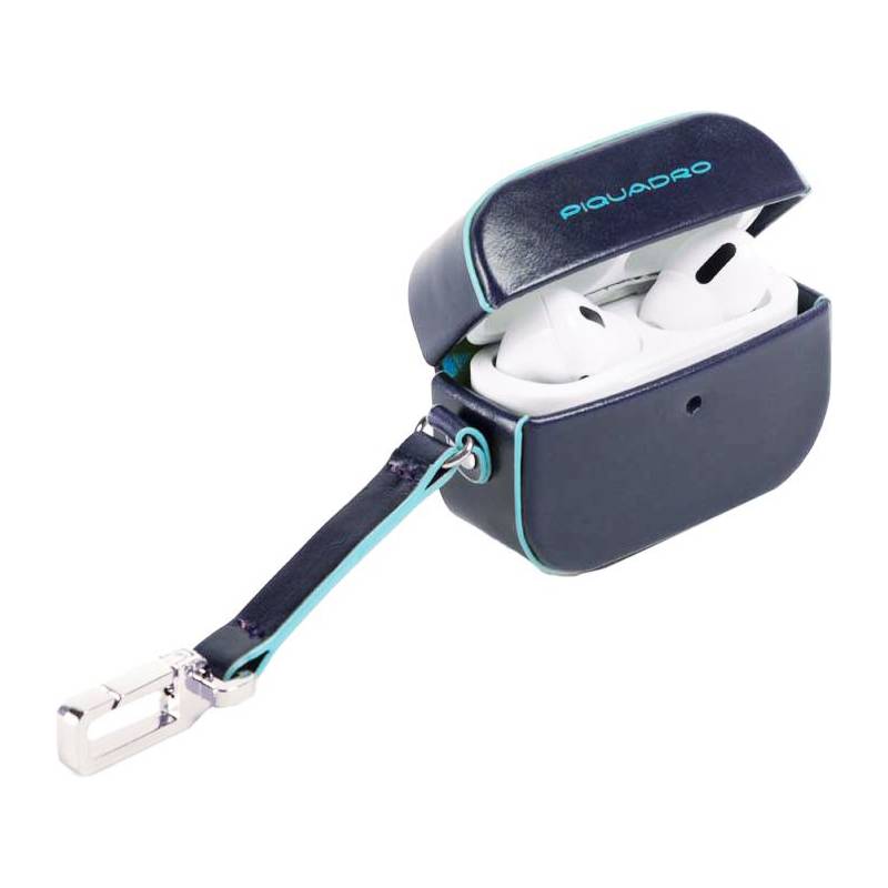 - Стильный кожаный чехол от Piquadro для AirPods Pro. Изготовлен из высококачественной телячьей кожи с фирменным голубым кантом.