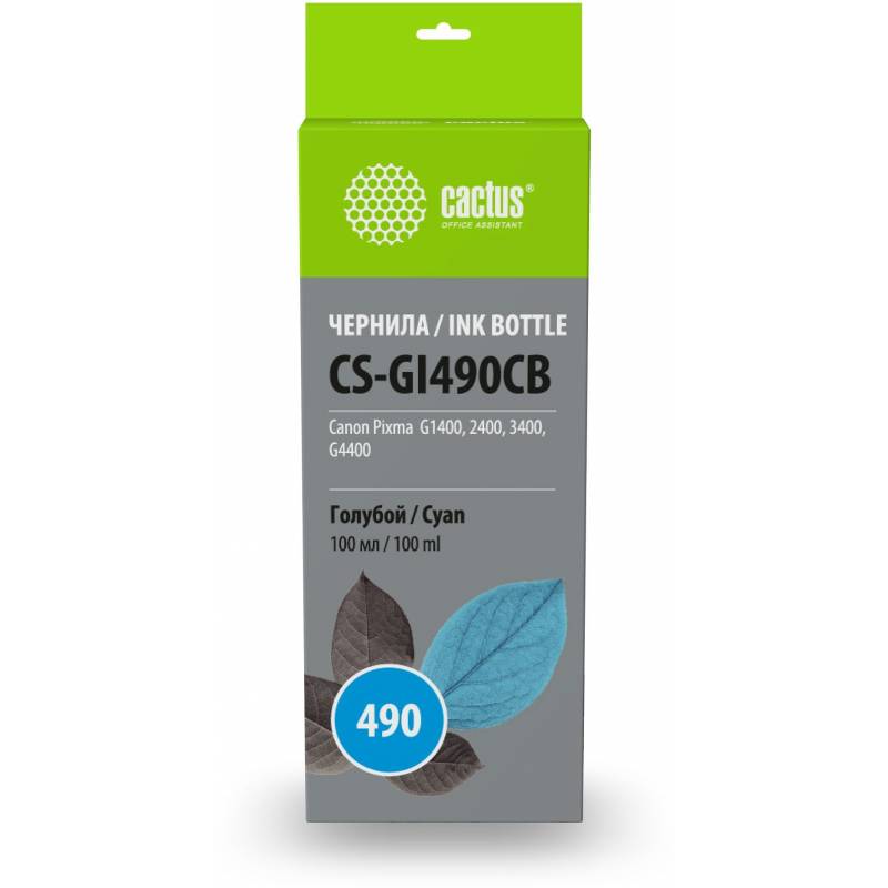 Чернила Cactus CS-GI490CB GI-490 голубой 100мл для Canon Pixma G1400/G2400/G3400