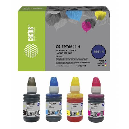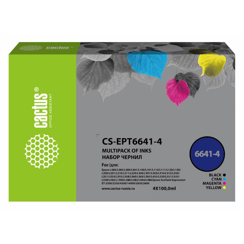 Чернила Cactus CS-EPT6641-4 T664 многоцветный набор 4x100мл для Epson L100/L110/L120/L132/L200/L210/L222/L300/L312/L350/L355/L36