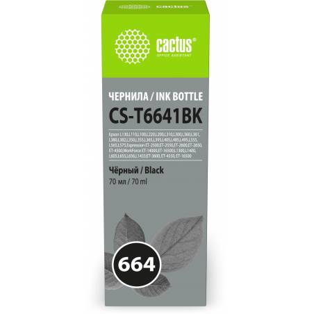 Чернила Cactus CS-T6641BK 664 черный 70мл для Epson L130,L110,L100,L220,L200,L310,L300,L360,L361,L380,L382,L350,L355,L365,L395,L