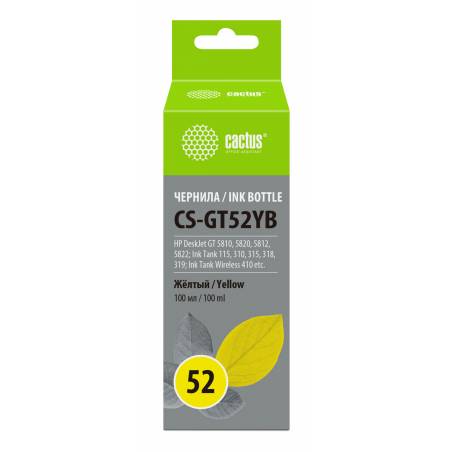 Чернила Cactus CS-GT52YB M0H56AE желтый 100мл для DeskJet GT 5810/5820/5812/5822