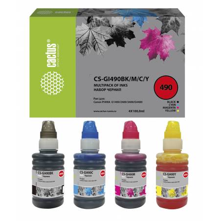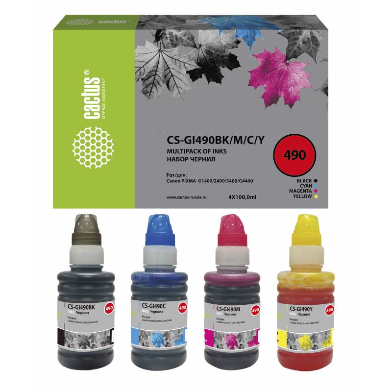 Чернила Cactus CS-GI490BK/M/C/Y GI-490 многоцветный набор 4x100мл для Canon Pixma G1400/G2400/G3400