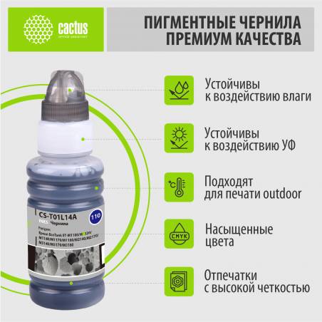Чернила Cactus CS-T01L14A 110S BK черный пигментный 70мл для Epson M1100/M1120/M1170/M2140/M2170