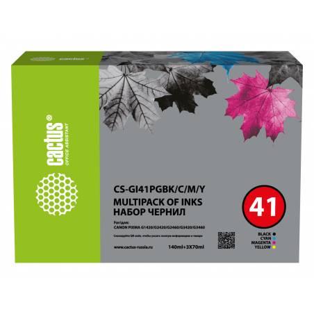 Чернила Cactus CS-GI41PGBK/C/M/Y голубой/пурпурный/желтый/черный для Canon PIXMA G1420/G2420/G2460/G3420/G3460