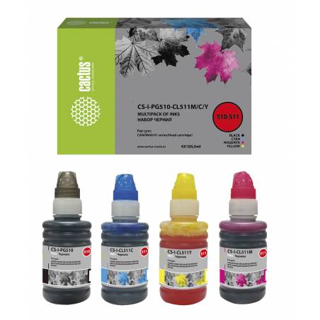 Чернила Cactus CS-I-PG510-CL511M/C/Y многоцветный набор 4x100мл для Canon Pixma MP240/MP250/MP260/MP270
