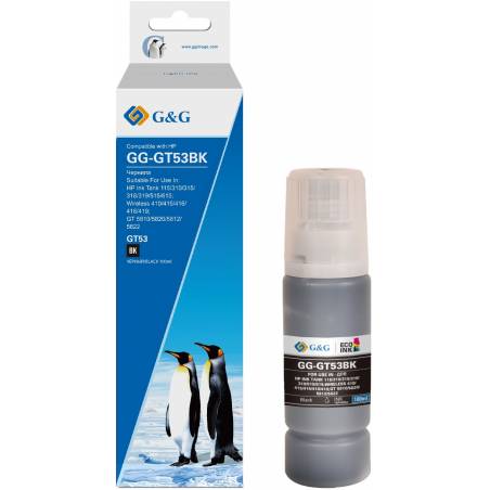 Чернила G&G GG-GT53BK черный100мл для HP Ink Tank 110/115/116/118/310/315/316/318/319/515/615Wireless 410/411/415/416/418/419G
