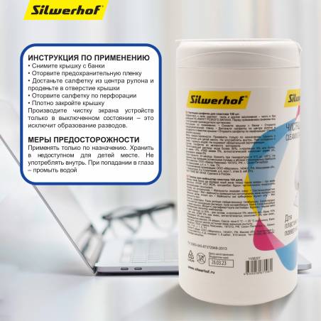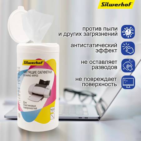Салфетки Silwerhof 671215 для компьютеров и оргтехники туба 100шт влажных