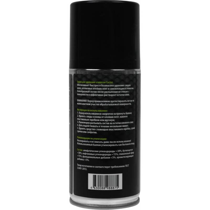 - Спрей для удаления этикеток с деревянных, металлических, стеклянных и большинства пластиковых поверхностей. Обеспечивает быстрое и безопасное удаление следов клея, клейких лент, самоклеящихся этикеток. Гелеобразный состав после распыления не стекает с пов