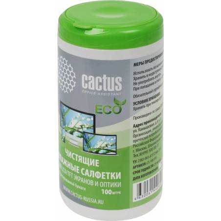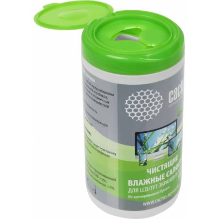 Салфетки Cactus CS-1001PE для экранов и оптики туба 100шт влажных
