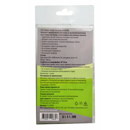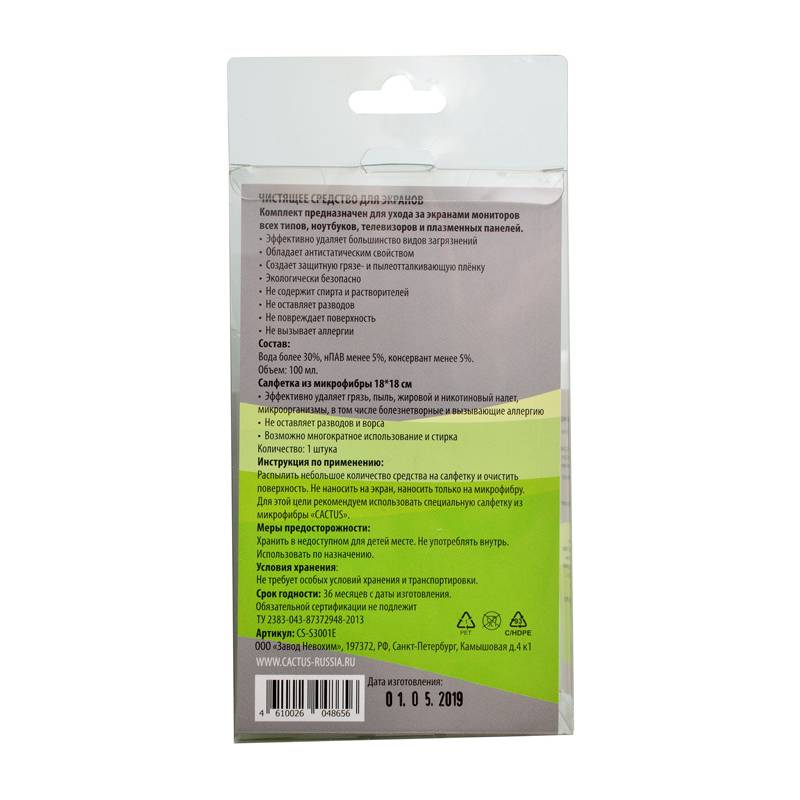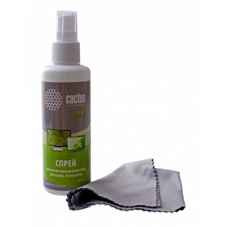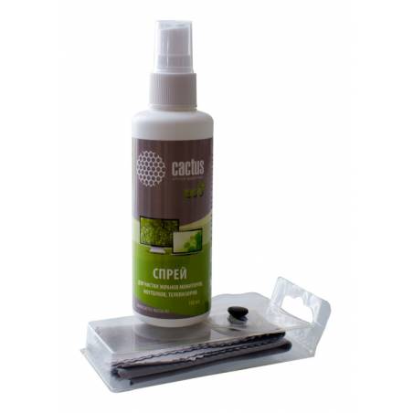 Чистящий набор (салфетки + спрей) Cactus CS-S3001E для экранов и оптики 1шт 18x18см 100мл
