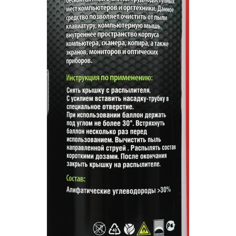 - Очиститель высокого давления позволяет очистить от пыли клавиатуру, мышь, оптические приборы, экраны мониторов, труднодоступные места оргтехники.