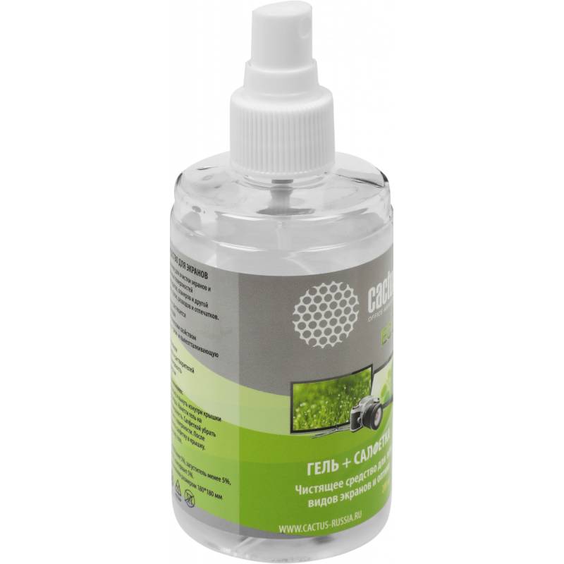 Чистящий набор (салфетка + гель) Cactus CS-S3004E для экранов и оптики 1шт 18x18см 200мл