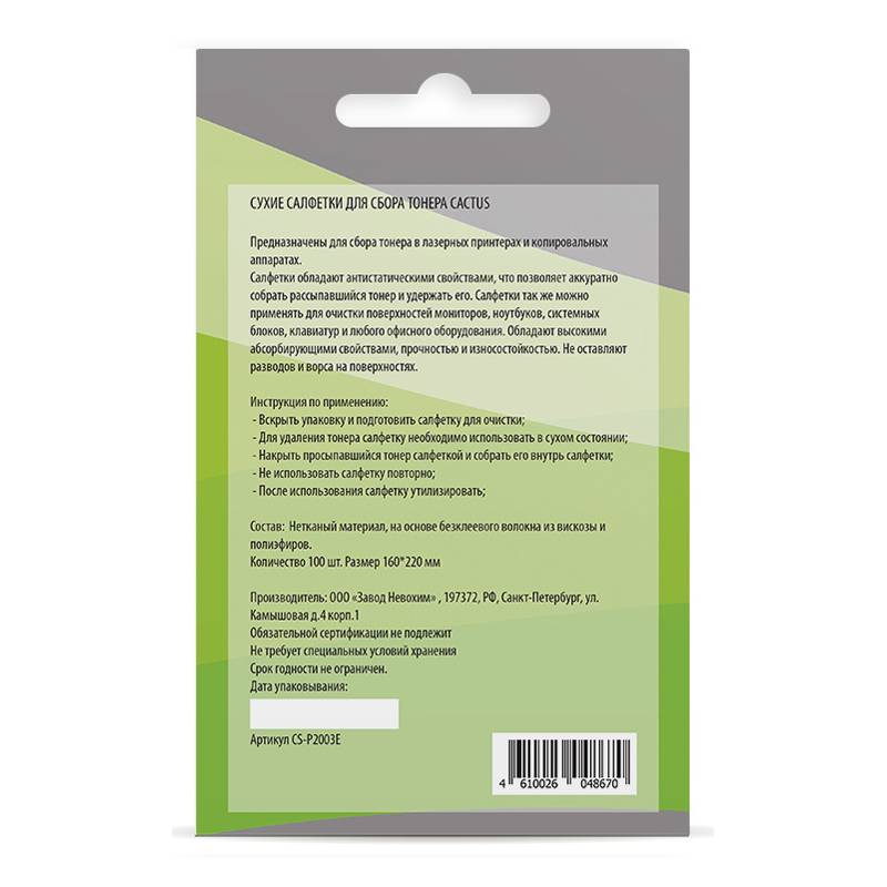 Салфетки Cactus CS-P2003E для сбора тонера 100шт сухих