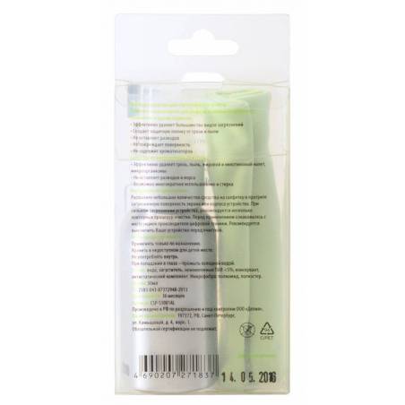 - Комплект предназначен для ухода за экранами смартфотов, планшетов и других гаджетов. Обладает антистатическим свойством, не оставляет разводов и не повреждает поверхность. Компактный размер удобен для ношения с собой и ежедневного применения.