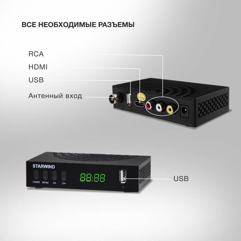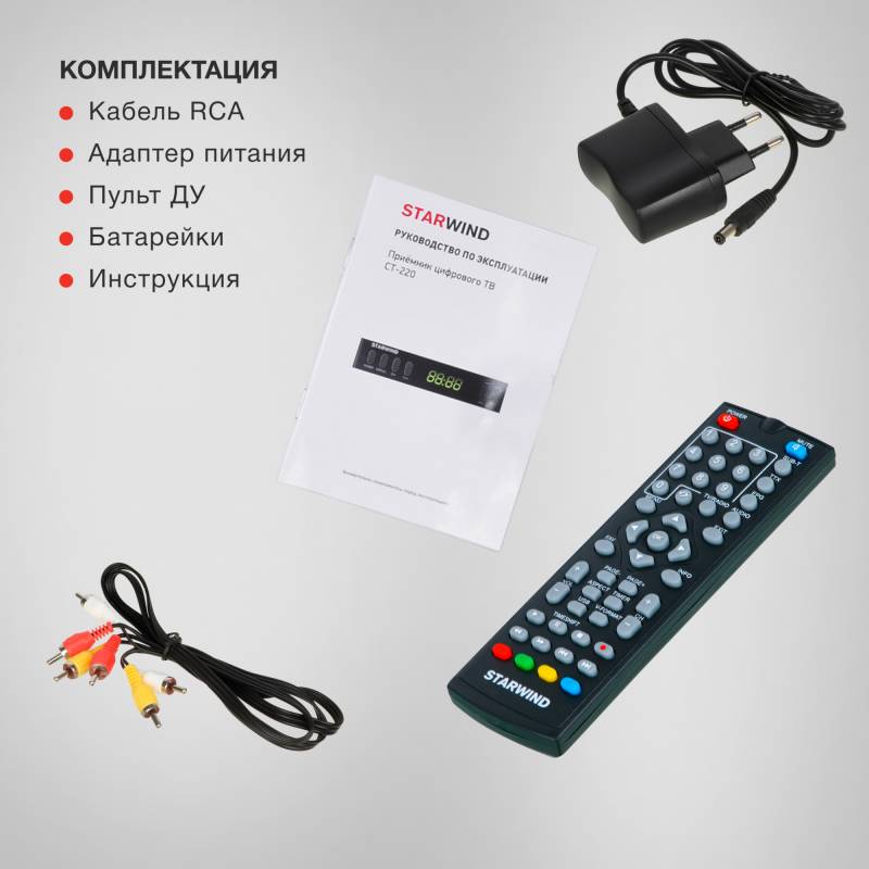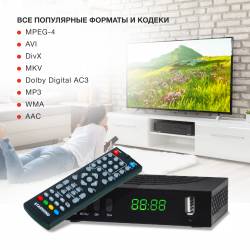- кнопки управления на корпусе, дисплей (каналы или часы). При подключении к интернету (USB WiFi адаптер на чипсете MTK MT7601 приобретается отдельно) доступны YouTube, Погода, RSS новости, IPTV, MEGOGO. В комплекте: ТВ-ресивер, пульт ДУ и батарейки к н