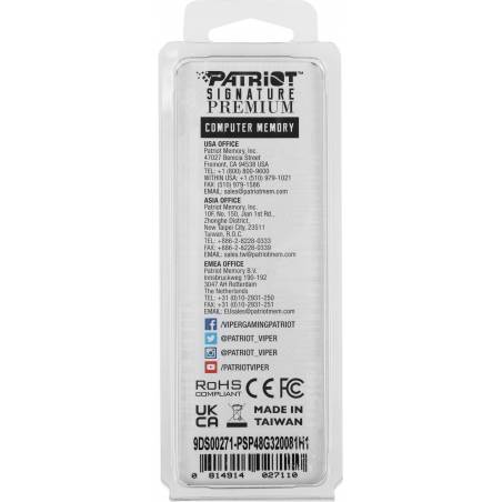 Память DDR4 8Gb 3200MHz Patriot PSP48G320081H1 Signature RTL Gaming PC4-25600 CL22 DIMM 288-pin 1.2В single rank с радиатором Re