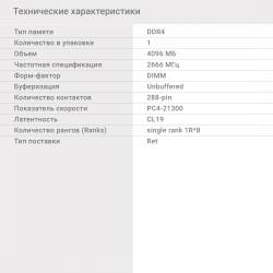 Память DDR4 4Gb 2666MHz Digma DGMAD42666004S RTL PC4-21300 CL19 DIMM 288-pin 1.2В single rank Ret