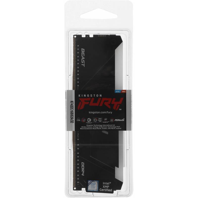 Память DDR4 32GB 3200MHz Kingston KF432C16BB2A/32 Fury Beast RGB RTL Gaming PC4-25600 CL16 DIMM 288-pin 1.35В dual rank с радиат