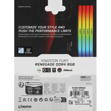 Память DDR4 8GB 3600MHz Kingston KF436C16RB2A/8 Fury Renegade RGB RTL Gaming PC4-28800 CL16 DIMM 288-pin 1.35В dual rank с радиа