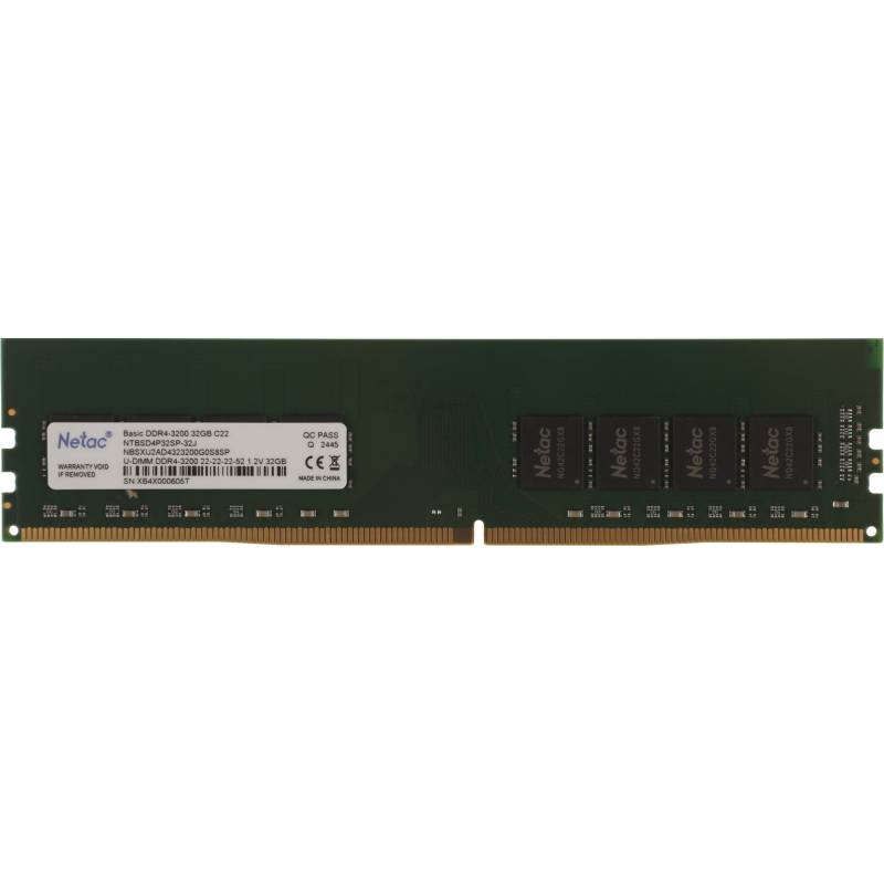 Память DDR4 32GB 3200MHz Netac NTBSD4P32SP-32J Basic RTL PC4-25600 CL22 DIMM 288-pin 1.2В single rank Ret