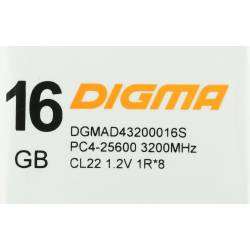 Память DDR4 16Gb 3200MHz Digma DGMAD43200016S RTL PC4-25600 CL22 DIMM 288-pin 1.2В single rank Ret