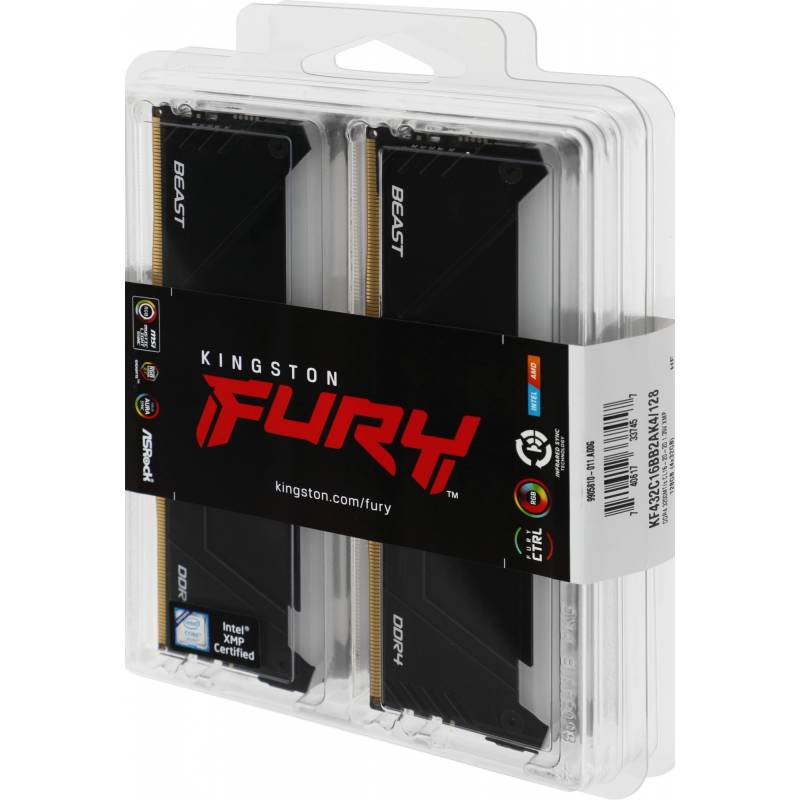 Память DDR4 4x32GB 3200MHz Kingston KF432C16BB2AK4/128 Fury Beast Black RGB RTL Gaming PC4-25600 CL16 DIMM 288-pin 1.35В dual ra