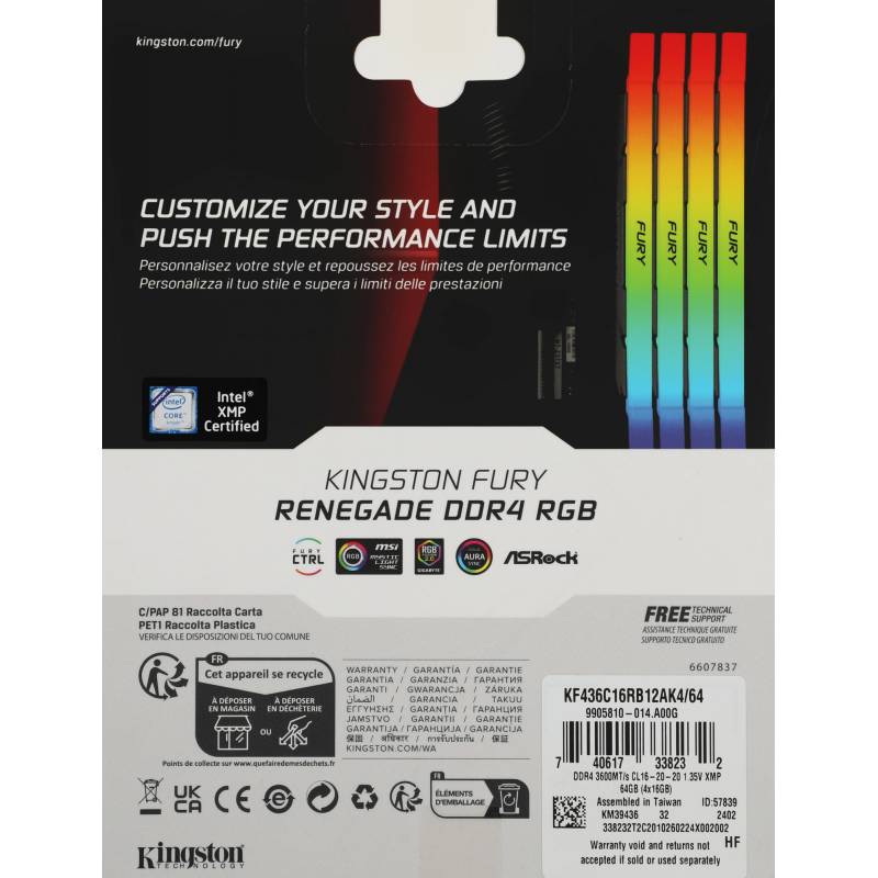 Память DDR4 4x16GB 3600MHz Kingston KF436C16RB12AK4/64 Fury Renegade RGB RTL Gaming PC4-28800 CL16 DIMM 288-pin 1.35В kit dual r