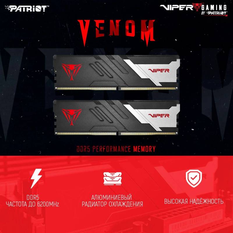 Память DDR5 2x32Gb 5200MHz Patriot PVV564G520C40K Viper Venom RTL Gaming PC5-41600 CL40 DIMM 288-pin 1.35В с радиатором Ret