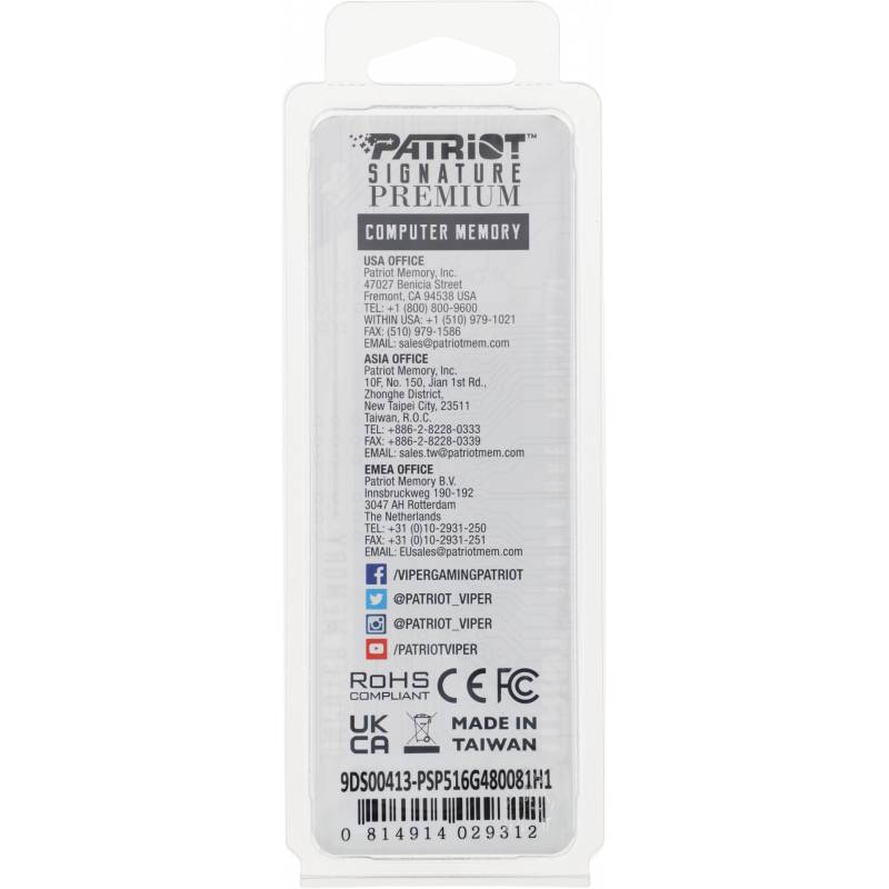 Память DDR5 16GB 4800MHz Patriot PSP516G480081H1 Signature Premium RTL PC5-38400 CL40 DIMM 288-pin 1.1В single rank с радиатором