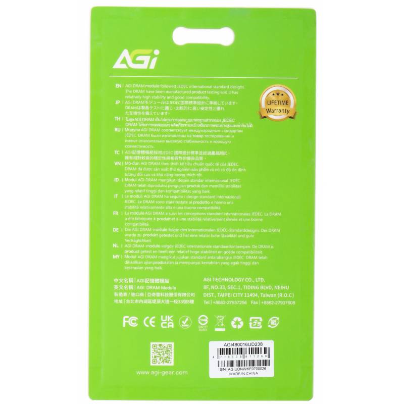 Память DDR5 16GB 4800MHz AGi AGI480016UD238 RTL PC5-38400 CL40 DIMM 288-pin 1.1В single rank Ret
