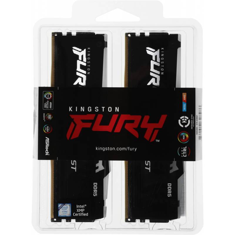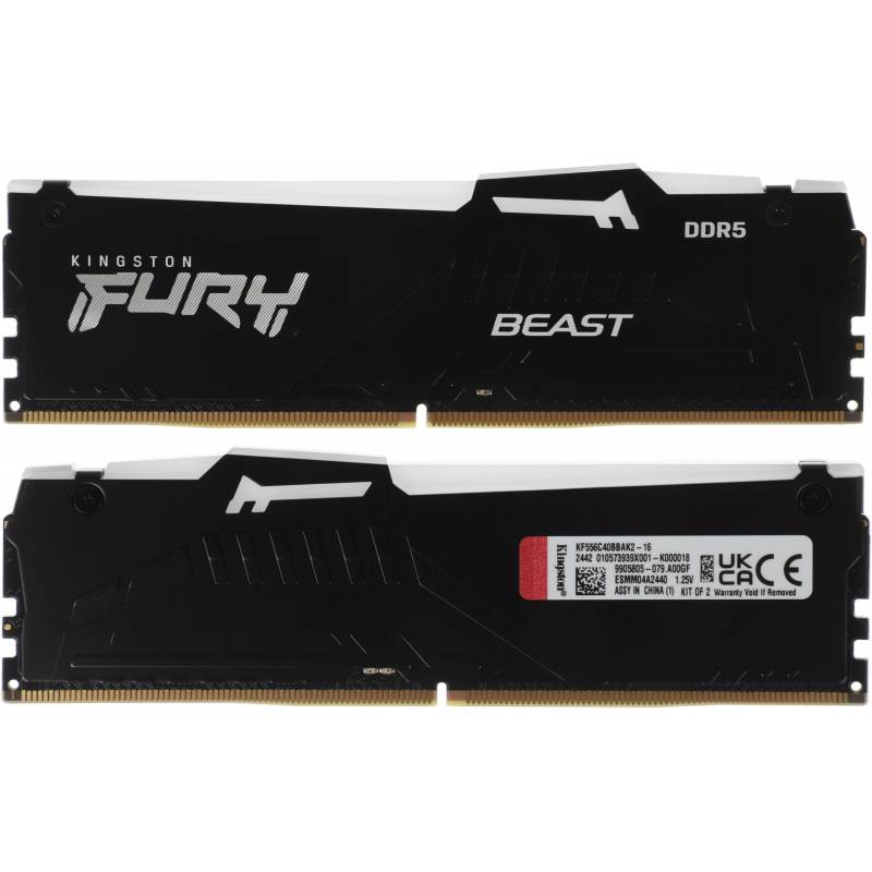 Память DDR5 2x8Gb 5600MHz Kingston KF556C40BBAK2-16 Fury Beast RGB RTL Gaming PC5-44800 CL40 DIMM 288-pin 1.25В single rank с ра