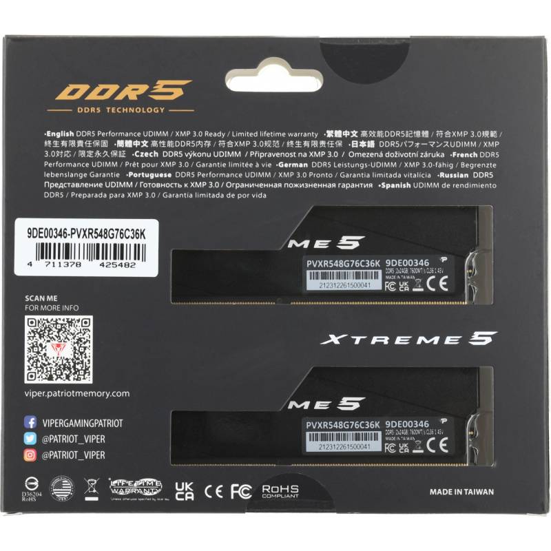 Память DDR5 2x24GB 7600MHz Patriot PVXR548G76C36K Viper Xtreme 5 RGB RTL Gaming PC5-60800 CL36 DIMM 288-pin 1.45В с радиатором R