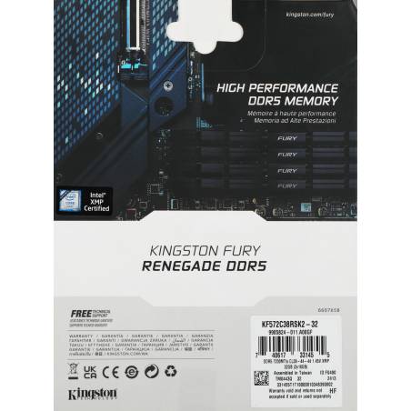 Память DDR5 2x16GB 7200MHz Kingston KF572C38RSK2-32 Fury Renegade Silver XMP RTL Gaming PC5-57600 CL38 DIMM 288-pin 1.45В kit si
