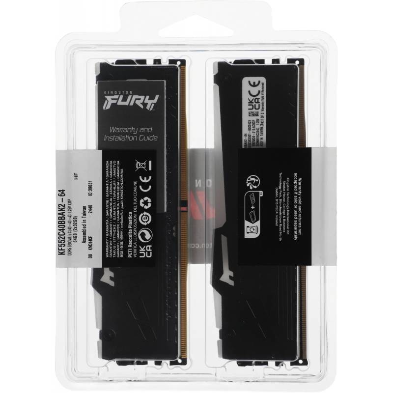 Память DDR5 2x32GB 5200MHz Kingston KF552C40BBAK2-64 Fury Beast RGB RTL Gaming PC5-41600 CL40 DIMM 288-pin 1.25В kit single rank