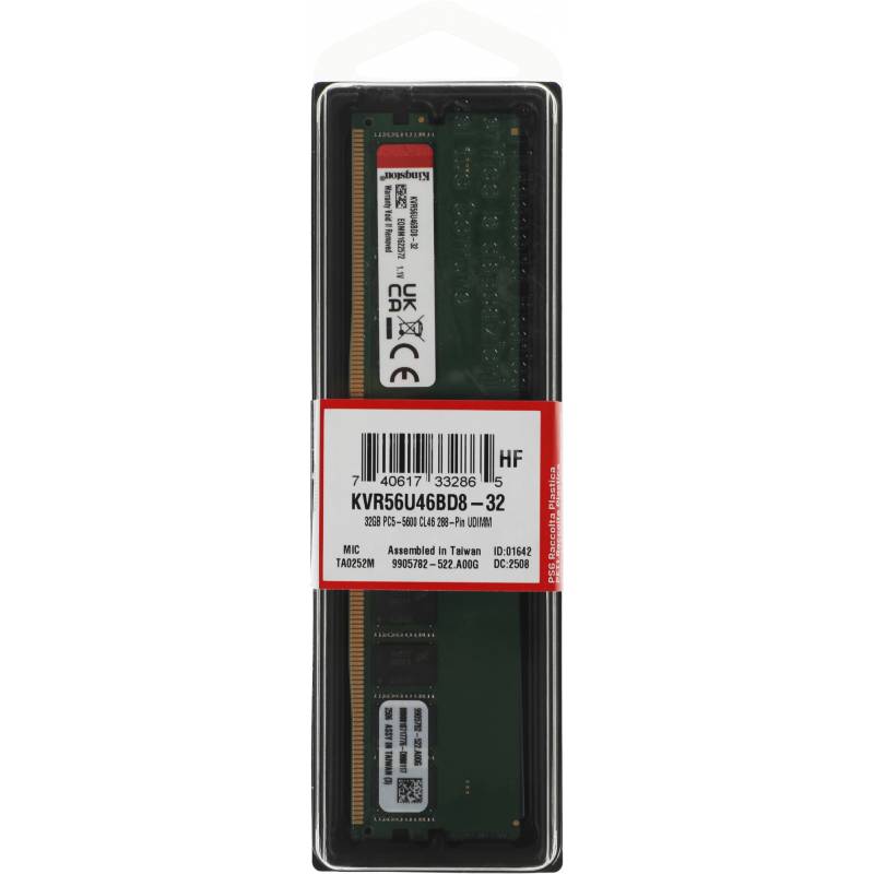 Память DDR5 32GB 5600MHz Kingston KVR56U46BD8-32 Valueram RTL PC5-44800 CL46 DIMM 288-pin 1.1В dual rank Ret