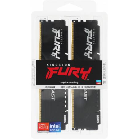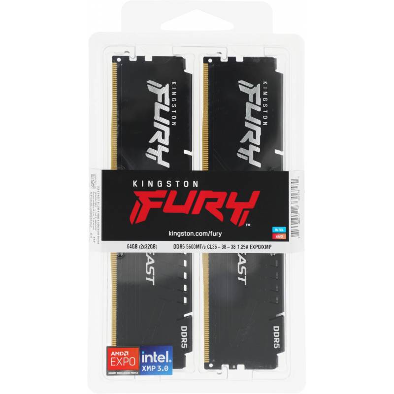 Память DDR5 2x32GB 5600MHz Kingston KF556C36BBEK2-64 Fury Beast Black RTL Gaming PC5-44800 CL36 DIMM 288-pin 1.25В single rank с