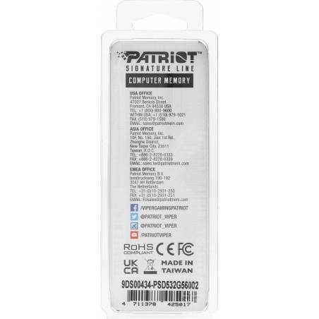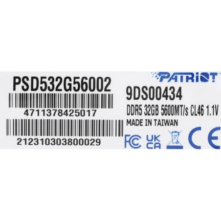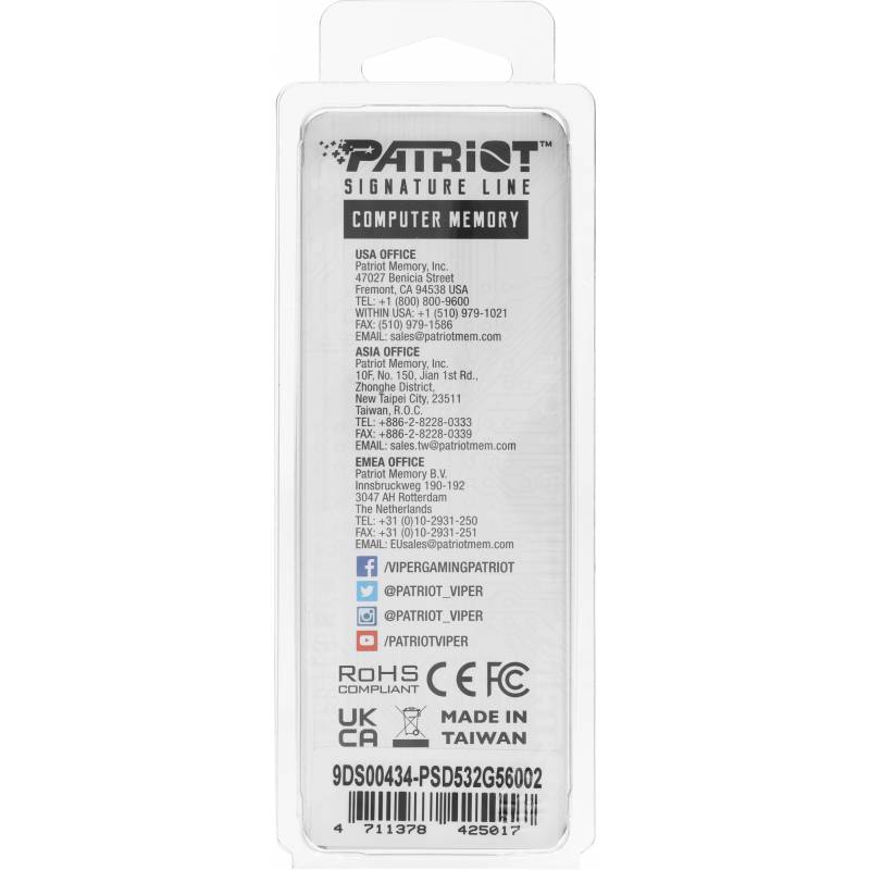 Память DDR5 32GB 5600MHz Patriot PSD532G56002 Signature RTL PC5-44800 CL46 DIMM 288-pin 1.1В dual rank Ret