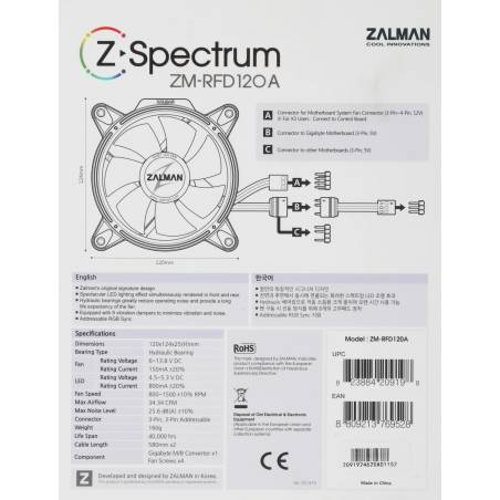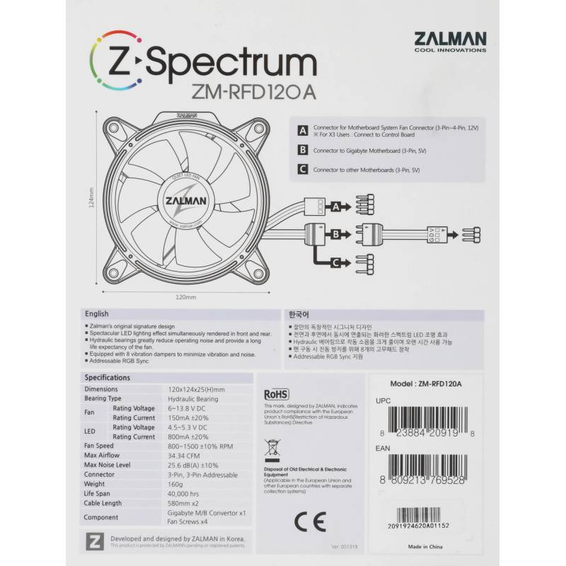 Вентилятор для корпуса Zalman ZM-RFD120A Addressable ARGB 120х120x25 черный 3-pin 26дБ (ZM-RFD120A) Ret