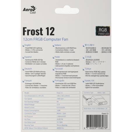 Вентилятор для корпуса Aerocool Frost 12 RGB 120х120x25 черный 3-pin 4-pin (Molex) 23.7дБ (FROST 12 FRGB MOLEX + 3P) Ret