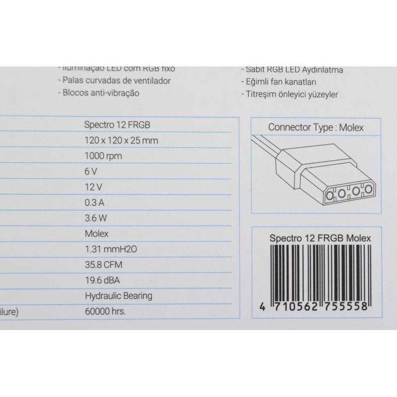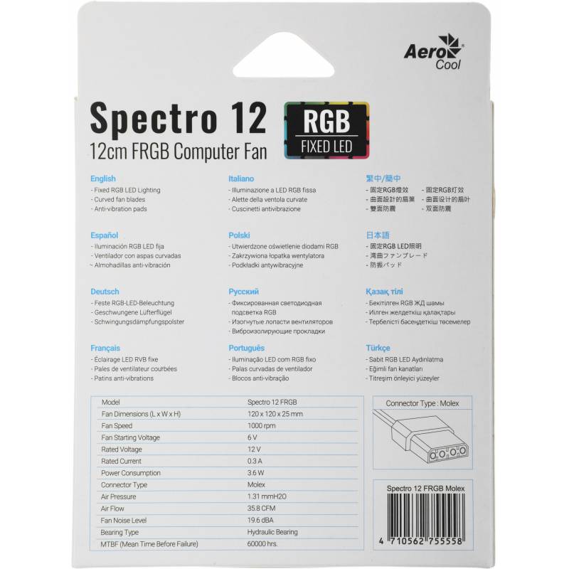 Вентилятор для корпуса Aerocool Spectro 12 RGB 120х120x25 черный 4-pin (Molex) 20дБ (SPECTRO 12 FRGB MOLEX) Ret
